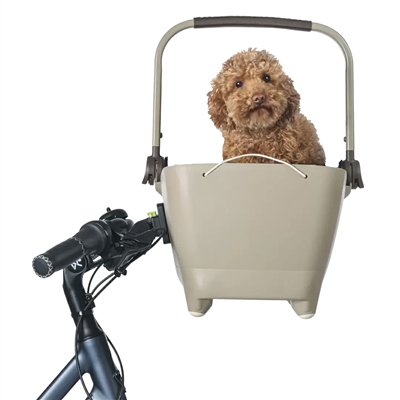 The Basil Buddy KF dog bicycle basket is perfect for those who love cycling with their dog. Simply attach the sustainable plastic basket to the front of your bike. It is removable.